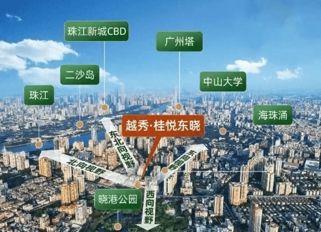 西南侧直面约17万平的晓港公园,东侧望百年学府中大和城市封面广州塔,北望珠江新城天际线和二沙岛,每一个角度,都有不一样的风景。从而实现广府人更舒适的生活场景。